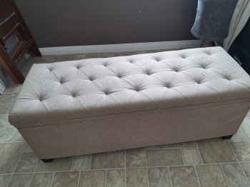 44x16 inch storage bench. Steel frame can support 600 lbs. Linen fabric. Can be used with or without cover. Good condition. Smoke free and cat friendly home. Willing to deliver to Brandon for additional $25.