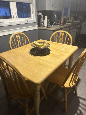 Kitchen table and 4 chairs extendible with hidden leaf under table 36?x 48? (3? x 4?) extends 36?x60?(3?x5?) for a quick response. Text at 204-761-9106 or call at 204-728-1059.