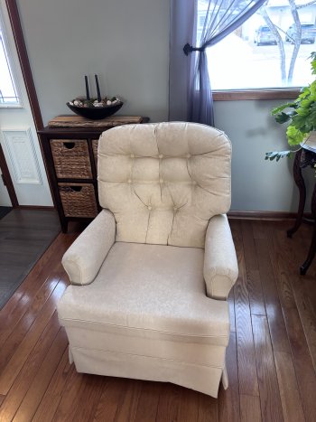 Swivel rocker chair. No holds. Cash only. Must pick up.