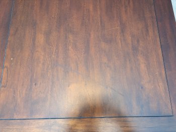 The table has some surface scratches and wear, very sturdy and in good condition.