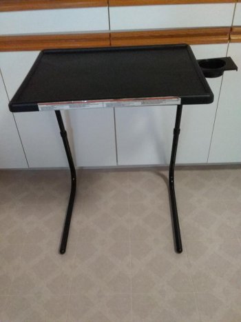 "Table-Mate" folding table ideal for crafting, reading, etc.. Easy storage, adjustable heights and angles, sliding holder. Table top is approx. 20.5 inches x 15.75 inches.