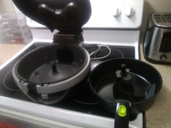 T-fal Actifry Original in great condition. Used it lots but got new one for Christmas. Has its own flipper as it rotates.