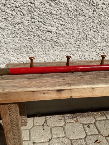 A REPURPOSED VINTAGE OAR. THE OAR?S TIP IS COPPER COVERED AND THE HANDLE HAS BRASS.
