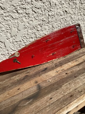 PEGS HAVE BEEN ADDED TO HOLD EITHER HATS OR COATS AND THE PADDLE PART HAS HOOKS FOR KEYS ETC.