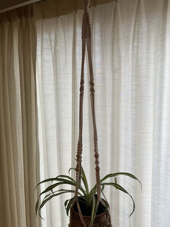 MACRAME PLANT HANGER WITH SPIDER PLANT.