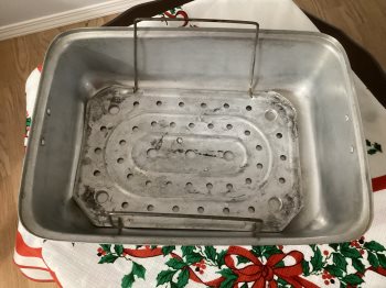 Large Roaster with Electric knife, tongs, baster,ties and Christmas table cloth