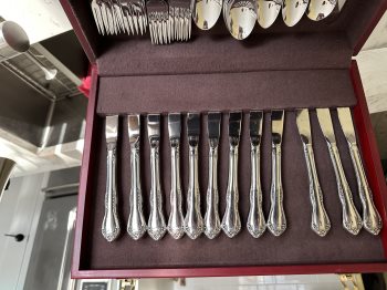12 piece place setting of Oneida stainless steel cutlery, complete with a lovely storage box.