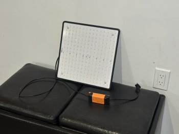 Square grow light. Plugs in and has attachments to hang. Barely used.