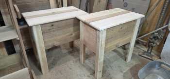 Cedar deck table, LWH 23x14x23.. Can custom build any size. 55.00 each Text if possible 250-490-7811