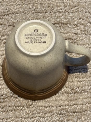 Vintage Mikasa stoneware whole wheat E6000 set. Mint condition. 6 dinner plates, 6 salad plates, 2 serving platters, 8 bowls, 1 serving bowl, 10 saucers, 13 cups/mugs, 6 large goblets, 6 small goblets, salt and pepper, cream and sugar. No delivery sorry. Located in Brandon