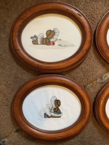 Beautiful set of 4 vintage needlepoints. Eskimo themed