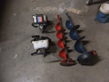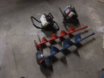 Two ice augers. One needs a piston, the other one has new fuel line and filter but does not want to prime up with fuel when cold starts and runs fine when warm. Carb needs cleaned maybe. Two augers one 8" and one 10" and one extension $300 for all.