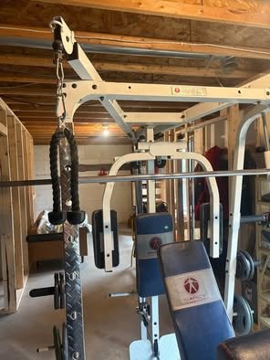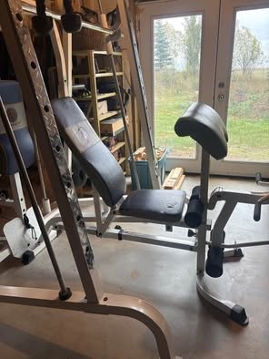 Marcy diamond elite home gym (smith machine) for sale. Comes with 230 lbs worth of steel weights, reclining bench. As well as many extra workout accessories.