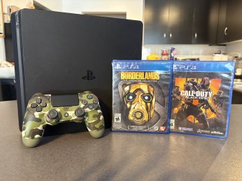 Sony PlayStation 4 Slim for sale. System comes with controller, two games, and power cords. System was cleaned inside and out, and works great. Thanks