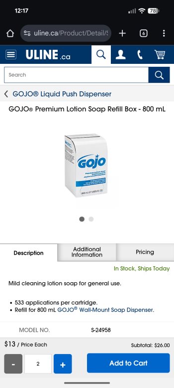 12 boxes of Gojo hand soap for use in a commercial dispenser (rinks, restaurants, etc). Can deliver depending on location.