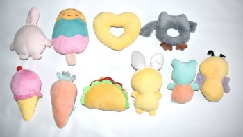 Purchased from Petsmart for my dog when she was a puppy but she didn't really play with them much. They have been just sitting in her toy box.