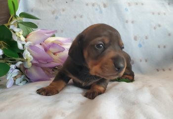 ** SOLD***Available are 2 sweet little male Miniature Dachshund pups. These guys will be vet checked, first shots done, dewormer given, and microchipped. 2 year genetic health guarantee, and sold on Spay/Neuter contract. Parents are CKC registered, but puppies will not be. Should be nice solid, compact boys. Red male ready to go Jan 4th, wild boar male ready to go Jan 17th