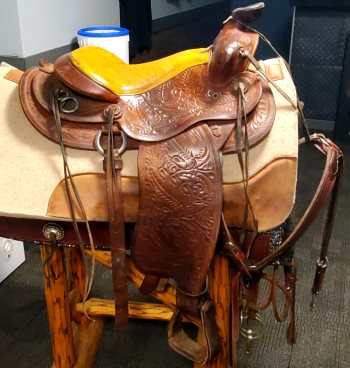 14.5in comfy padded seat, 8in gullet, round skirt, decent fleece, nice heavy stirrups. Comes with a Billy Cook nreast plate. Fits well on mutton withered wider horses. Rock solid tree. Much loved but need to cover vet bills.