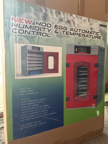 400 egg incubator. Excellent used condition. Comes in box. 450 obo.