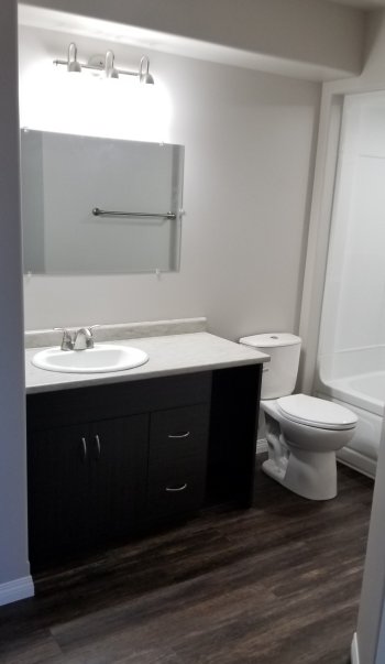 - One full bathroom (full tub unit), 5' x 11' Deck, vinyl plank & linoleum flooring throughout the suite.