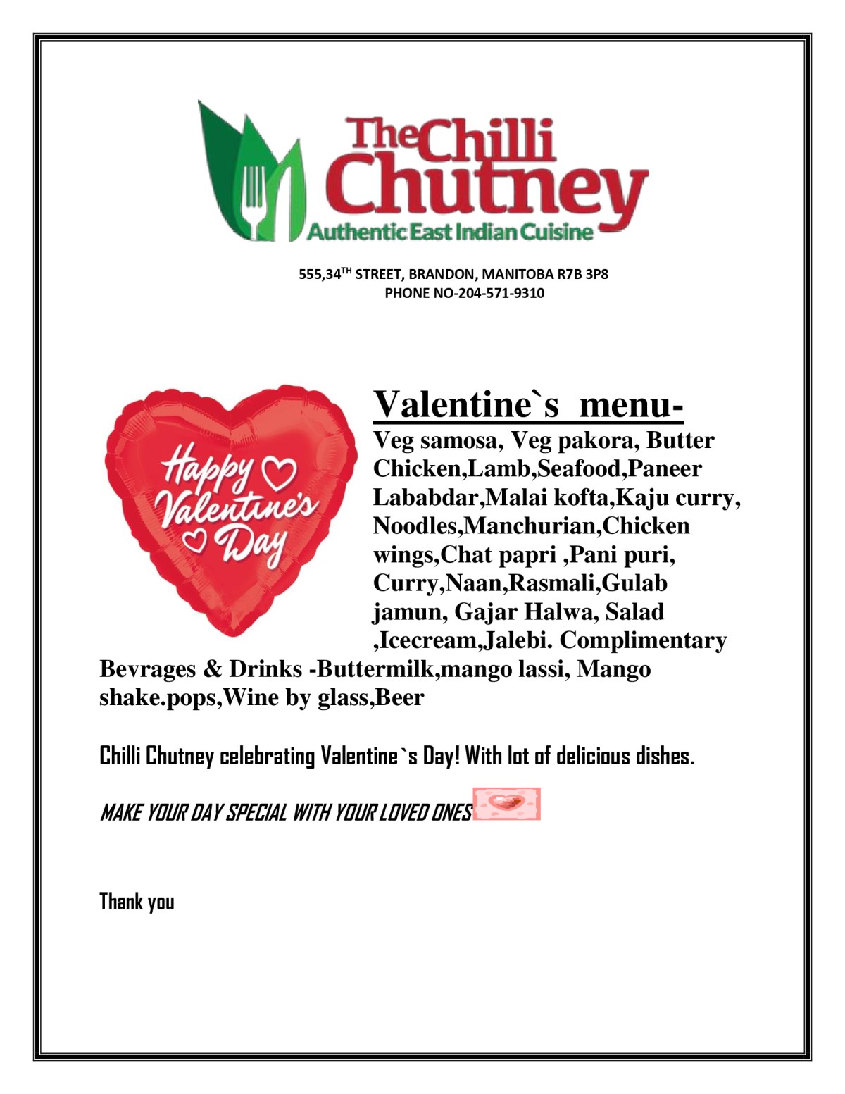 Updated Feb 12, 4pm: Added Chilli Chutney menu