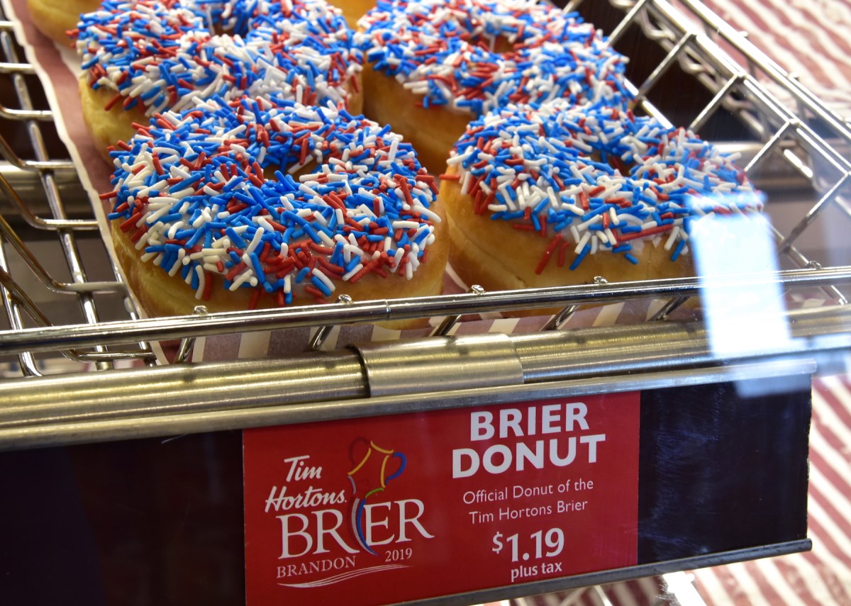 On the shelf right now is the Brier Donut, which they’re selling at Timmies locations in Brandon, Virden and Neepawa for the duration of the event until March 10. I understand that between all of their Westman stores they're making a little over 100 per day of the vanilla dipped donut decked out in sprinkles inspired by Brier colours.