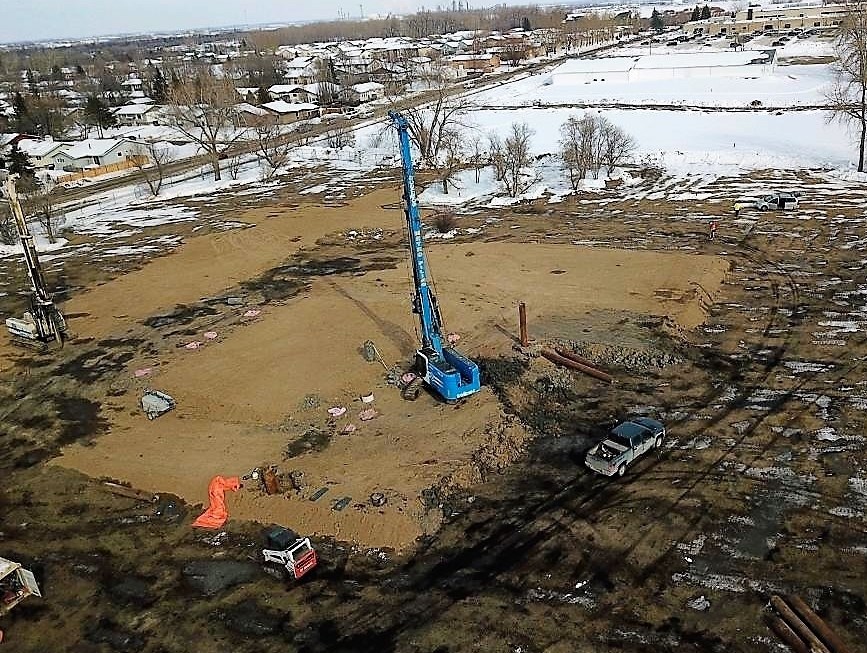 Crews first begun initial work at the site late last month at the corner of Ninth Street and Maryland Avenue and as this Brandon School Division-provided aerial photo taken yesterday shows they’re wasting no time in preparing for the more involved stages of the development process.