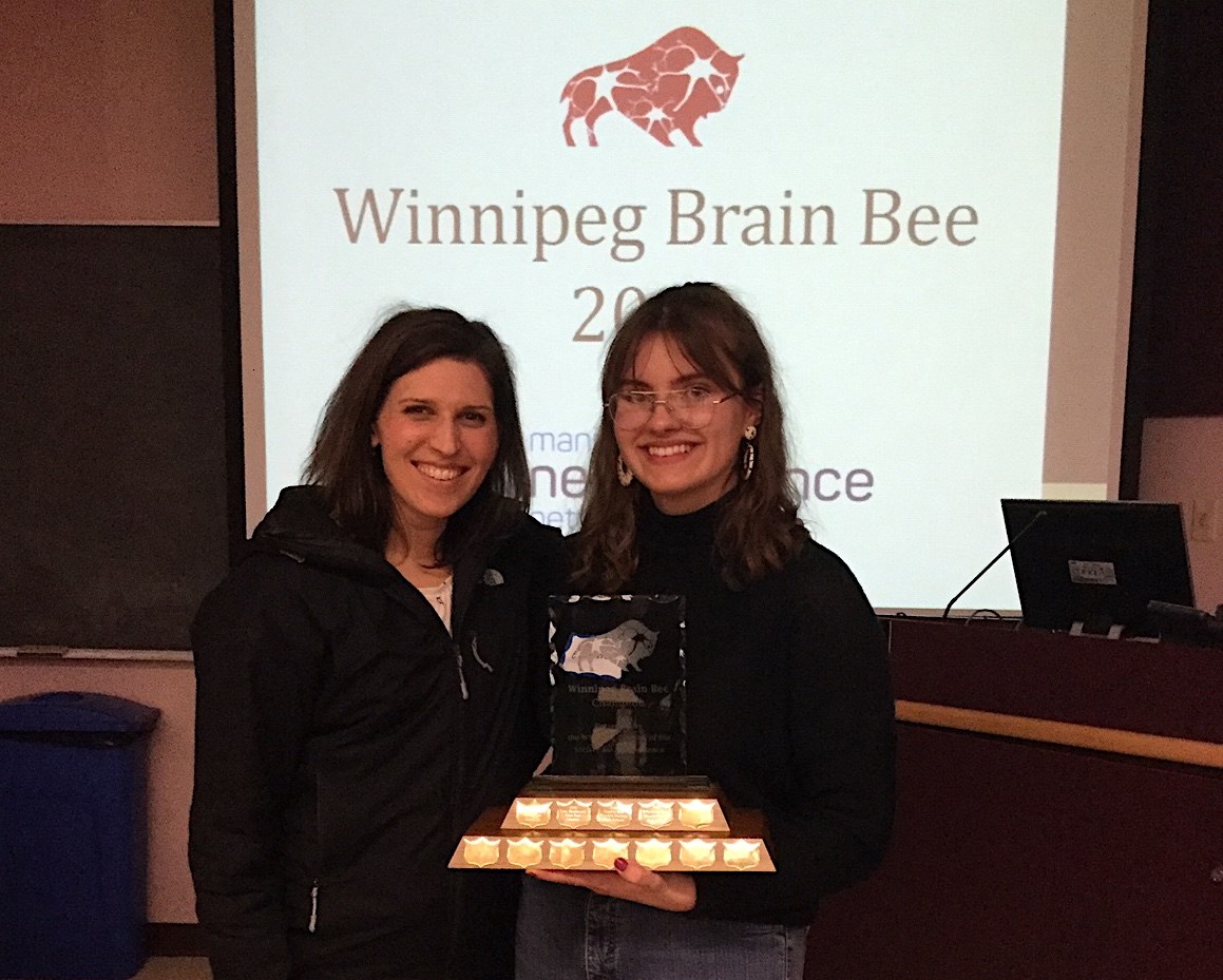 A big congrats to the team of eight Vincent Massey students that recently competed in the Winnipeg Brain Bee competition put on by the Manitoba Neuroscience Network. By all accounts the group demonstrated impressive knowledge of neuroscience topics, including first place winner Elayna Paddock-Thiessen and third place winner Catherine.