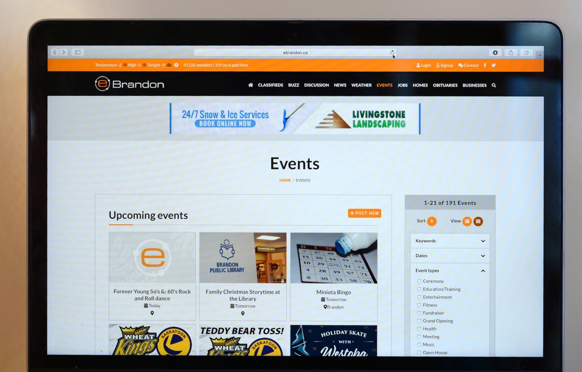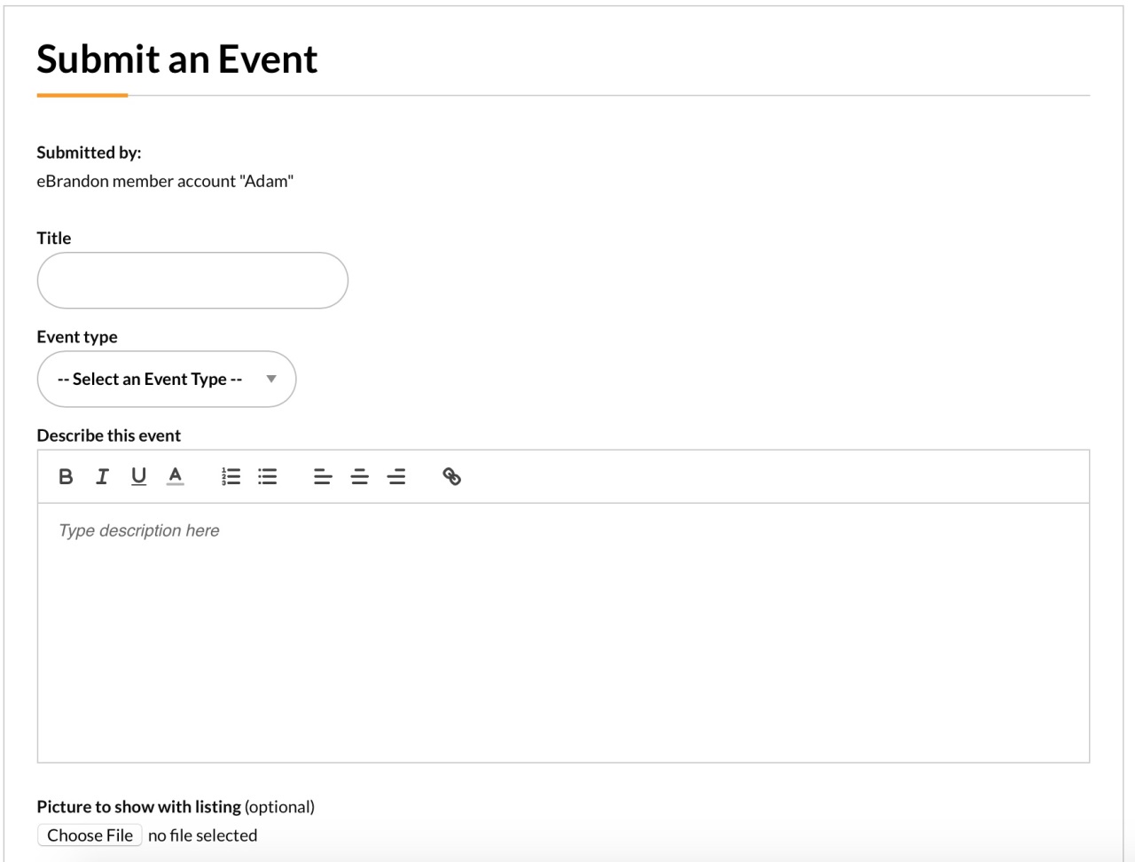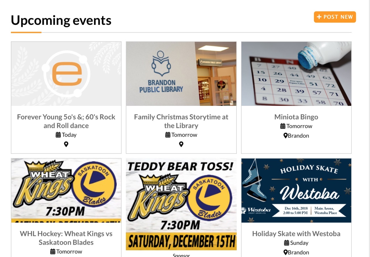 If you’d tried to use the events area of the previous eBrandon you were probably underwhelmed. All content mashed on one big page, hard to read with no consistent formatting, no pictures, hard to search. If you’d tried posting your own events you probably came away with a similar impression as posting was a clunky process, you had to wait as much as several days for approval and you couldn’t edit your postings after they went up.
