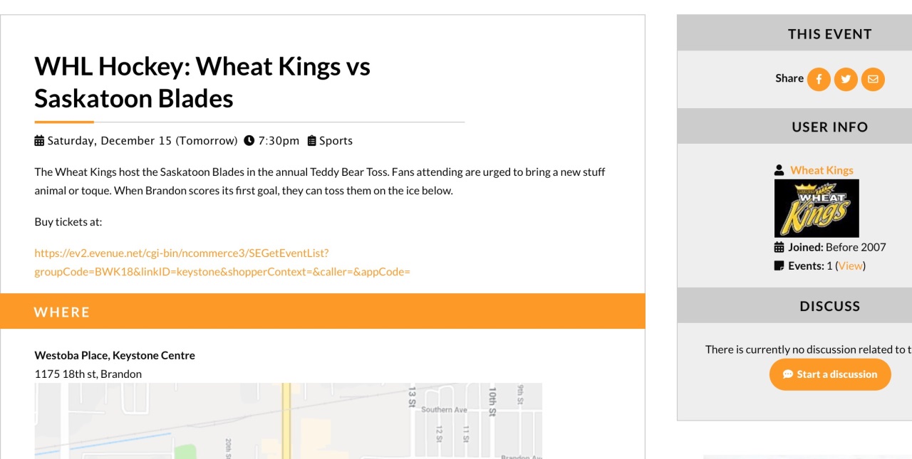 I know that my family likes to learn about events that are happening all throughout Southwest Manitoba and are always looking for fun day trips. One of the things the old calendar was embarrassingly bad at was accommodating more than just Brandon. The new calendar lets you select a city/town from the same list of towns used elsewhere on the site. Events in any town can also include their address and have their map shown on their event. If you’re involved with an event anywhere in Westman, we want to hear from you. I’ve made a habit that as much as I called the site eBrandon, for all intents and purposes its a Southwestern Manitoba site and its exciting for the events section to now be setup to reflect that