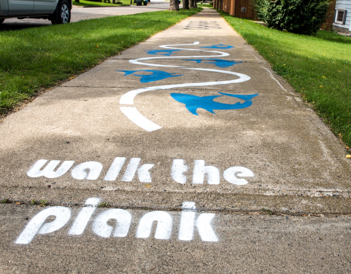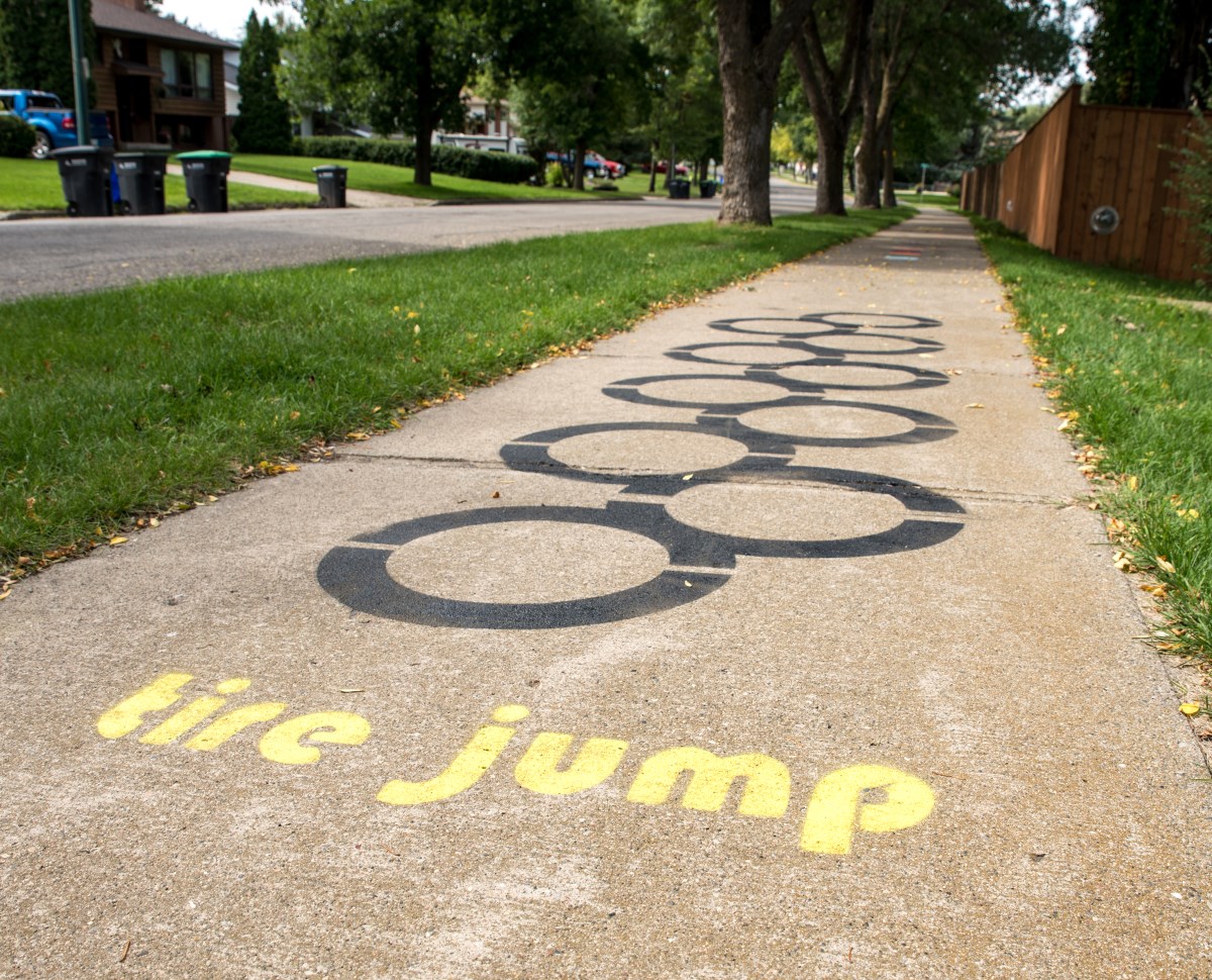 Now a residential sidewalk in the city is temporarily seeing another prime example of how a small amount of paint when selectively used can add a little personality and harmless fun to a stroll around city streets.