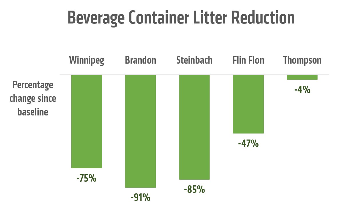 Reduction at Manitoba cities tracked in the audit (Canadian Beverage Container Recycling Association)