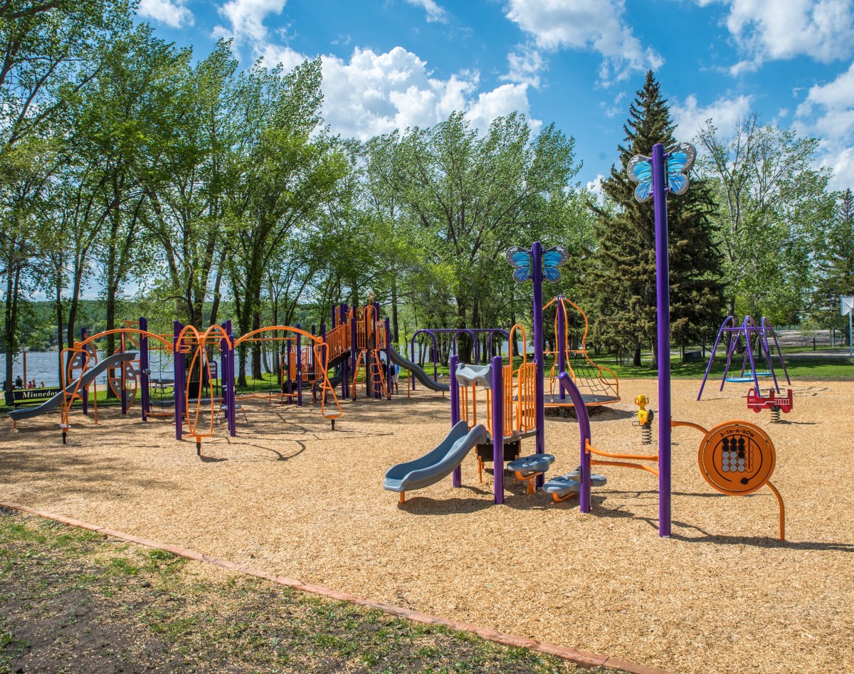 The $200,000 upgrade is the product of fundraising by the Minnedosa Beach Enhancement Committee, who reached their goal this past September after five years of effort. The new playground replaces the estimated three-decades-old previous play structure.