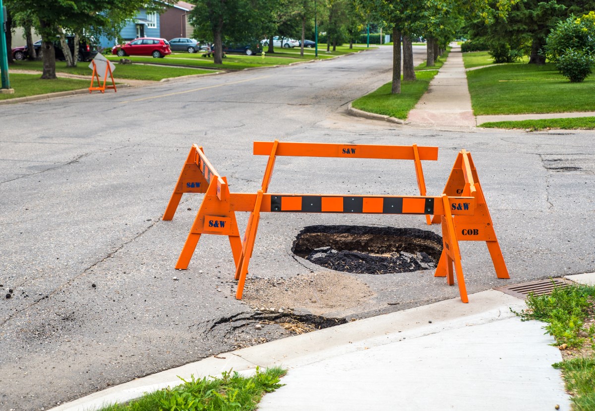 In both cases the instructions at this point at least pale in comparison to a car-sized crater that opened up on busy 1st Street in 2014. That particular obstruction was estimated to stretch 20 feet across at its widest point and eight feet deep.