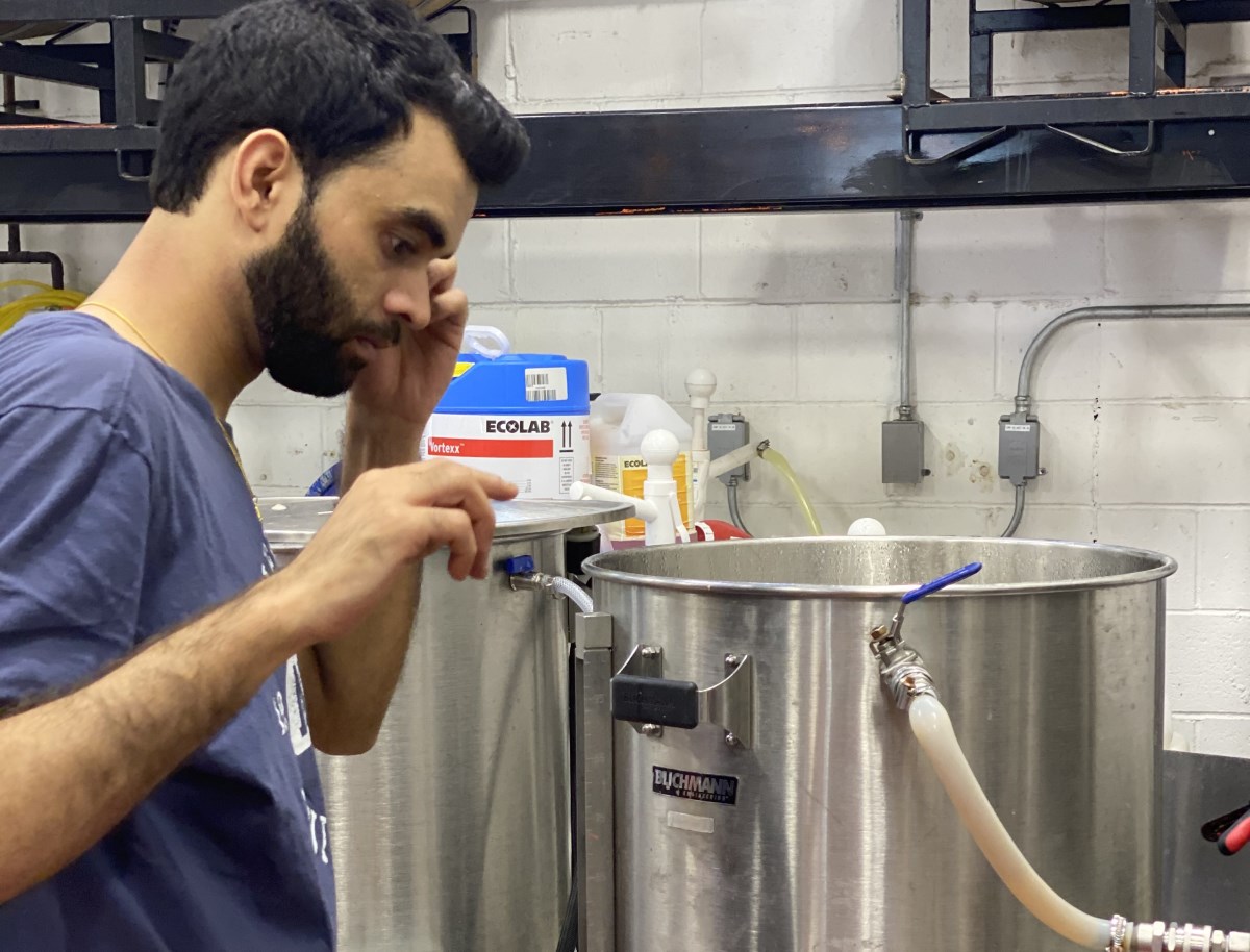Brewmaster Umber works on the first test batch of Black Wheat signature beer earlier this month (submitted)
