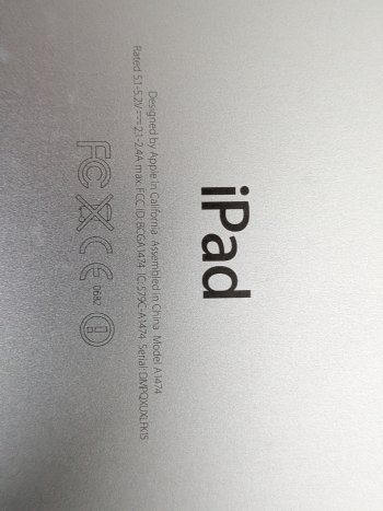 Old iPad for parts. Doesn't load many apps since it can't download new enough versions of Apple software. Good condition otherwise. Reset to factory settings.