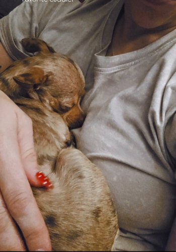 She is very much a lap pup, she loves to be with people always, cuddling is her favourite activity.