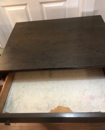 -Single Drawer With 2 Brass Knobs -Has Very Old Partial Paper Lining Inside The Drawer