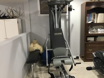 There is free weights, benches and a York Machine