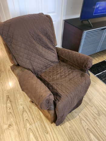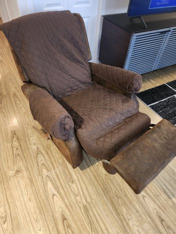 Recliner chair. Good condition. No rips or tears. Come with cover as well.