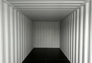Grey 20-foot shipping container. 20 feet long, 8 feet wide, and 8.5 feet tall lockable cargo doors on one end. wind and watertight corrosion-resistant Corten steel.