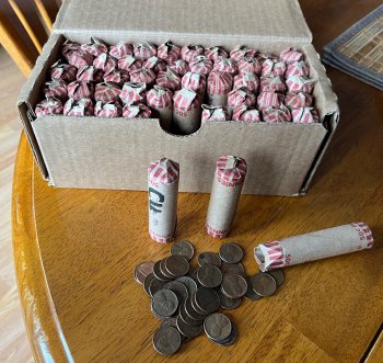 pennies are 95% copper and each weighs about 3.11 grams. A box of pennies therefore weighs a little over 17 pounds and contains about 16 1/4 pounds of copper. At a scrap copper price of $6.00 per pound, a box of US pennies contains a copper melt value of around $97.00. And copper continues to rise!