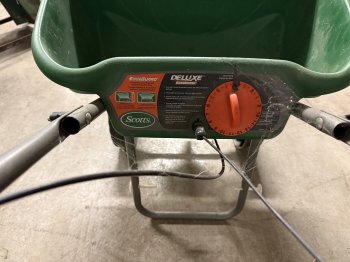 Scott Deluxe Edgeguard Spreader for sale. In good working condition, easy to use with lots of adjustment to fine tune your fertilizer application.
