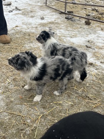 1/2 Australian Shepard 1/2 Border Collie, both parents are purebred. Father is active working dog, mom has good instincts. Vet checked and ready to go with first Vaccinations. Located just north of Minnedosa
