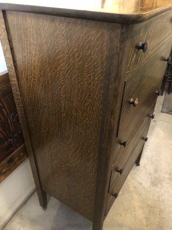 -Beautiful Antique 5 Drawer Tiger Oak High Boy Dresser -Solid Wood