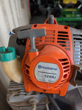 28cc gas trimmer comes with steel blades as well as strong cutter. Works well.