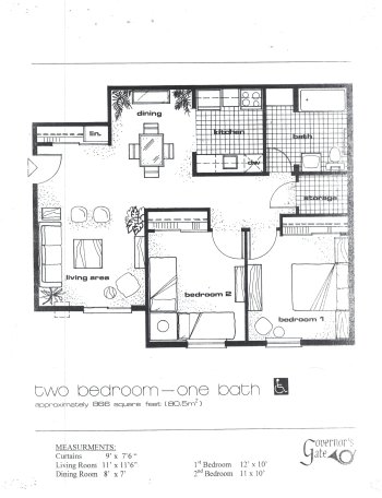 2 Bedroom 1 Bath Apartment. Designed for Handicap / 55 plus