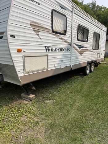 2005 wilderness cabin camper, slide out bunk, sleeps 6, 5 new tires only 2 trips to binscarth, tow bar, stabler bars for under the slide out when set up , comes with rugs, lights, odds and ends ,air and heat, it is winterized, electric lift for hook up, very great shape , asking $5000.00 firm. Call or text roger1-204-867-0201, pick up in minnedosa , can be seen anytime. Reason for selling dont have truck and can?t do the camping anymore , pictures in my facebook profile inside and out ..sold/sold/sold