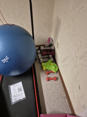 treadmill in good shape, multiple weights, stepper, exercise mat, exercise balls