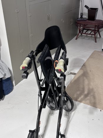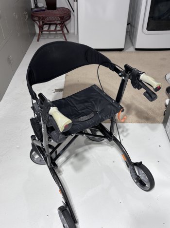 Airgo 4 wheels Excursion X23 walker. Locking hand brakes with seat and front bag. Used, very good condition. No holds. Cash only.